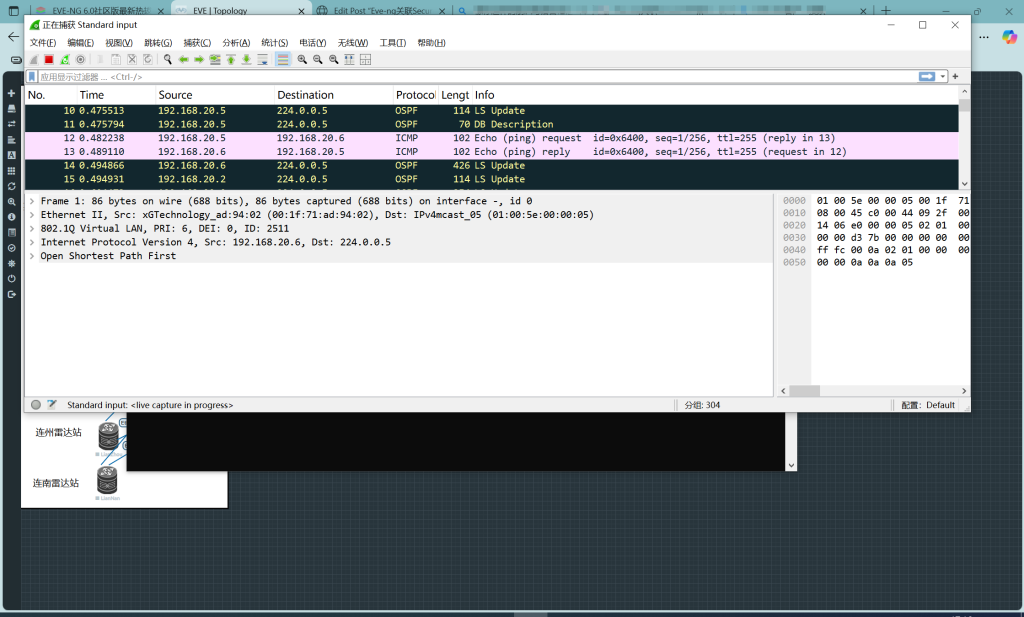 在EVE-NG客户端文件夹下找到wireshrak_wrapper.bat,用文本编辑器修改wireshark的安装路径,wireshark最好安装较新的版本,旧版本的wireshark存在卡顿的情况,会在接口初始化界面卡很久卡死,很久才能完成初始化,虽然也能正常抓包,但太慢了。