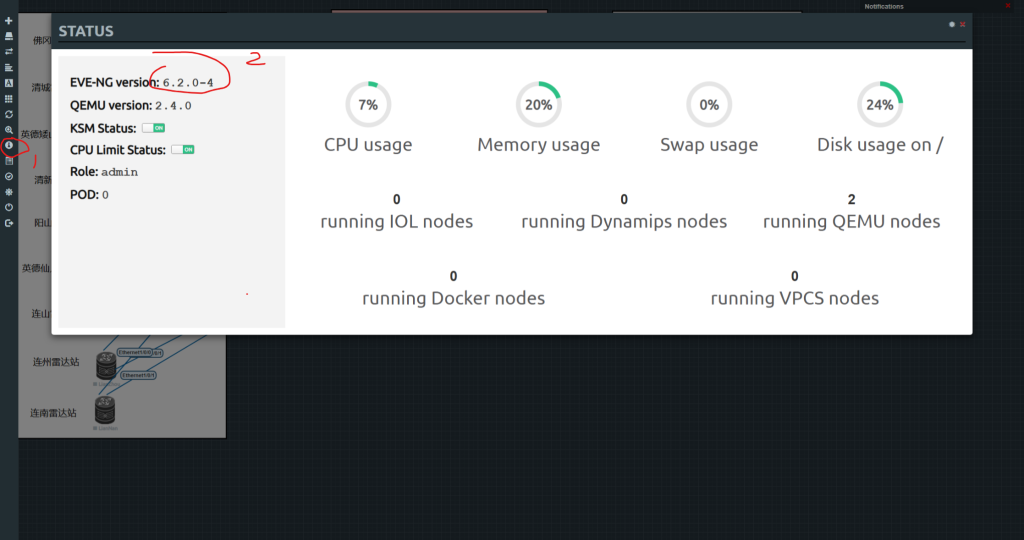去EVE-NG论坛下载 EVE-NG 社区版 6.2.0-4热拔插 插件,查看自己EVE-NG版本方法如下: